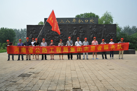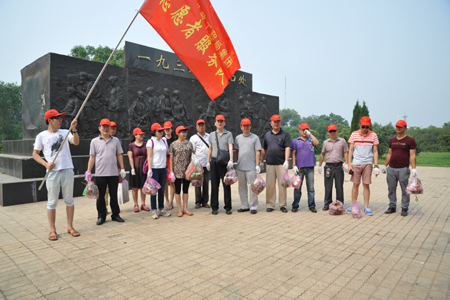 為弘揚(yáng)“學(xué)習(xí)雷鋒、奉獻(xiàn)他人、提升自己”的志愿服務(wù)精神,集團(tuán)公司機(jī)關(guān)黨員和檢測(cè)公司志愿者在紀(jì)念抗日戰(zhàn)爭(zhēng)勝利70周年來(lái)臨之際,于7月8日來(lái)到鄭州花園口黃河大堤進(jìn)行了“關(guān)愛(ài)自然,環(huán)保我先行”的志愿服務(wù)活動(dòng),參觀(guān)了花園口決口紀(jì)念碑,實(shí)地接受抗日戰(zhàn)爭(zhēng)愛(ài)國(guó)主義教育。
